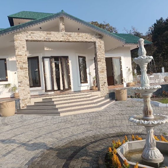 Surrounded by rolling landscapes, mountain views, and the occasional sight of peacocks wandering freely, the property invites guests to slow down and reconnect with the beauty of the outdoors.